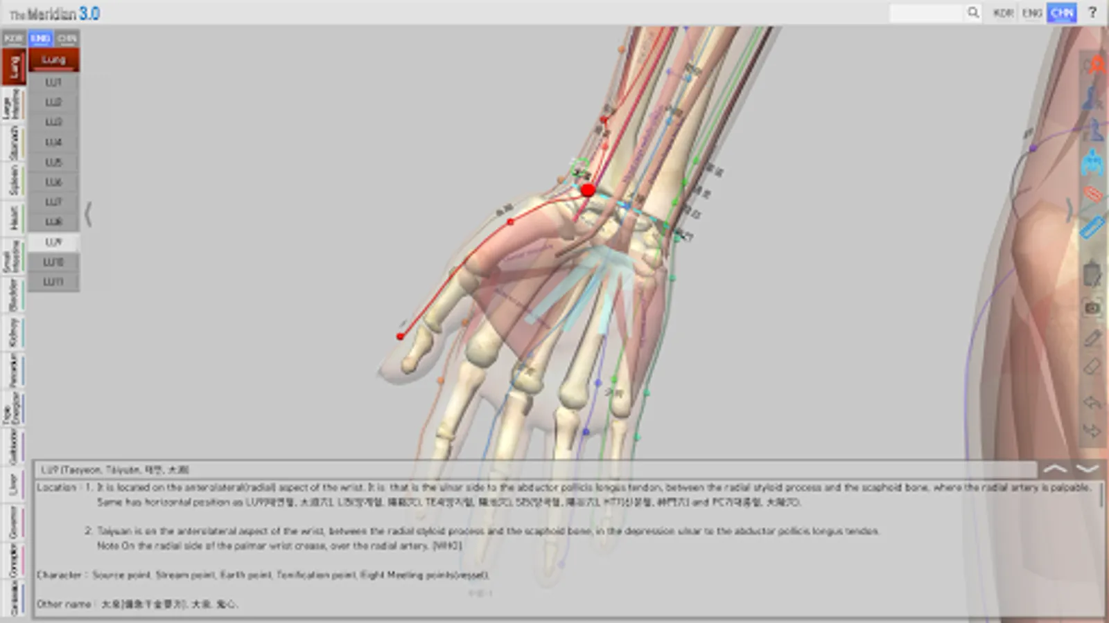 ‘The Meridian 3.0’ was created by integrating the 12 Meridians Acupuncture Points, Governor Vessel (GV) Acupuncture Points and Conception Vessel(CV) Acupuncture Points with its superficial Meridians together as one product on a 3D human model.