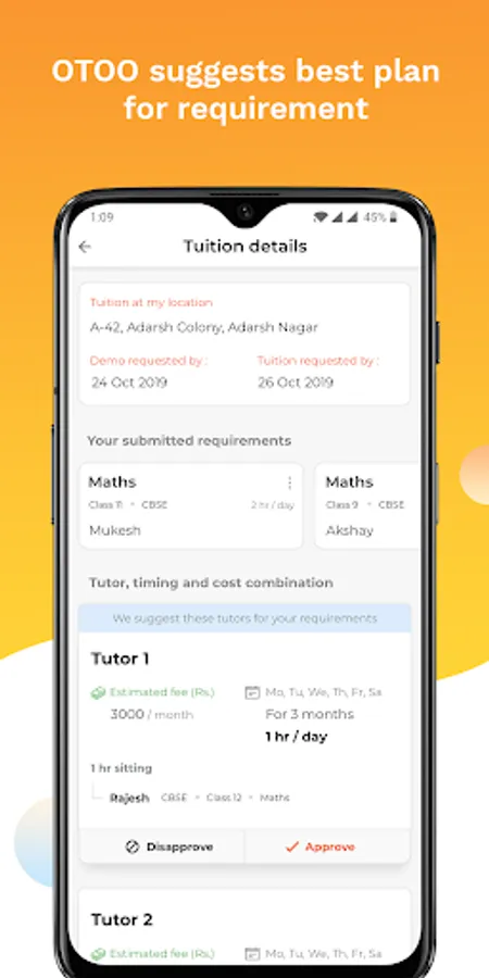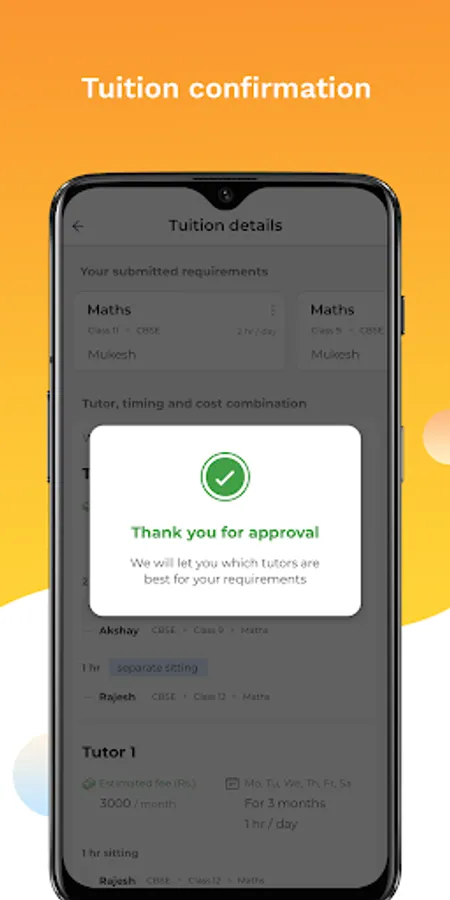 5.After approval, our app will suggest tutors based on your requirements. Select the one that matches best with your choice.