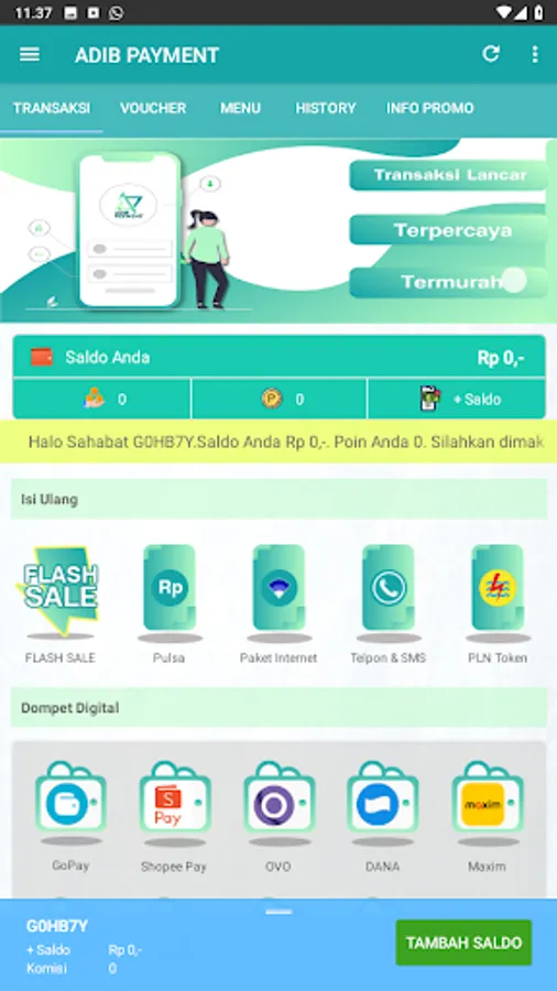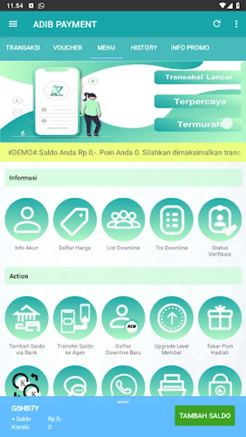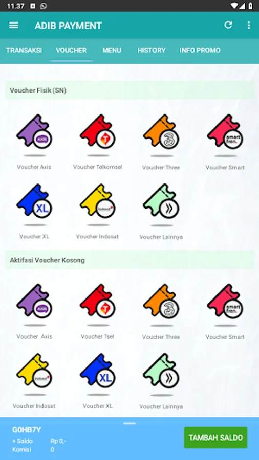 With this application, you can easily check the latest credit prices, see a recap of transaction history, change your balance history, downline activities, chat with customer service, and so on.