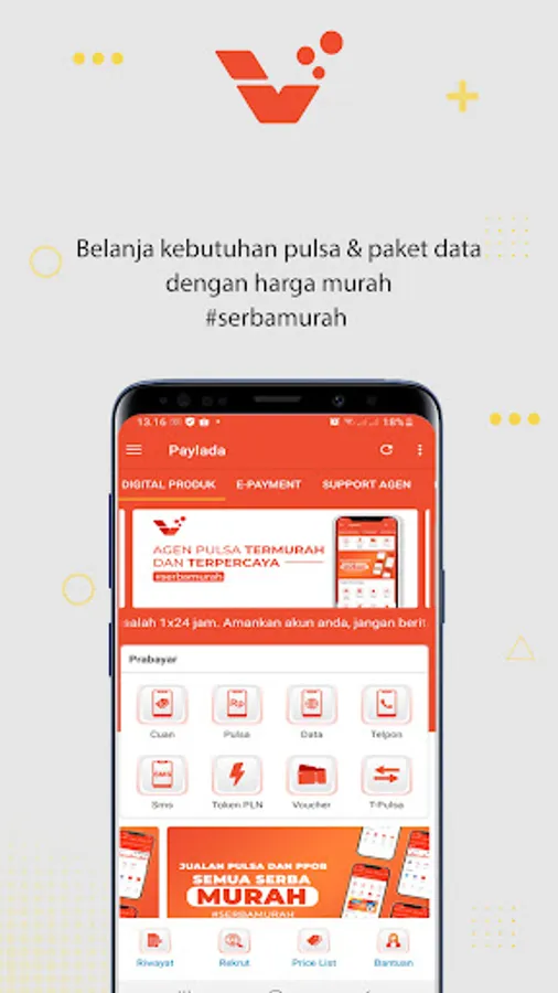 Complete product offerings and low prices as well as 24-hour call center support, helping and saving a lot of costs every time you make a transaction, you can even sell the various products that we have to build a network of credit agents to earn a sizable income
