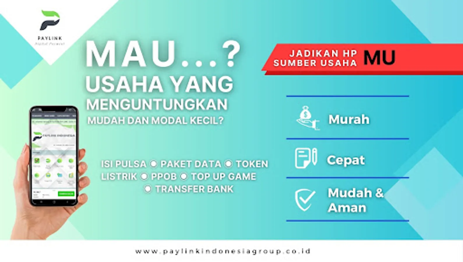 Paylink Indonesia is a free mobile application where you can sell or use it yourself. Paylink Indonesia makes it easy for you to make prepaid and postpaid transactions such as topping up data pulses, electricity tokens, e-Money & game top ups, paying utility bills, PDAM, TELKOM and many more.