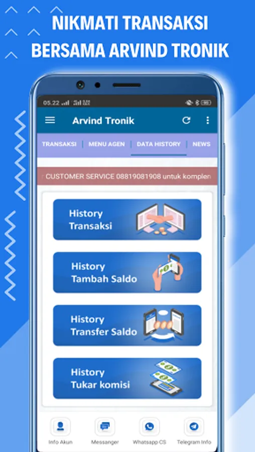 With this application, you can easily check the latest credit prices, view transaction history recaps, change your balance history, downline activities, chat with customer service, and so on.