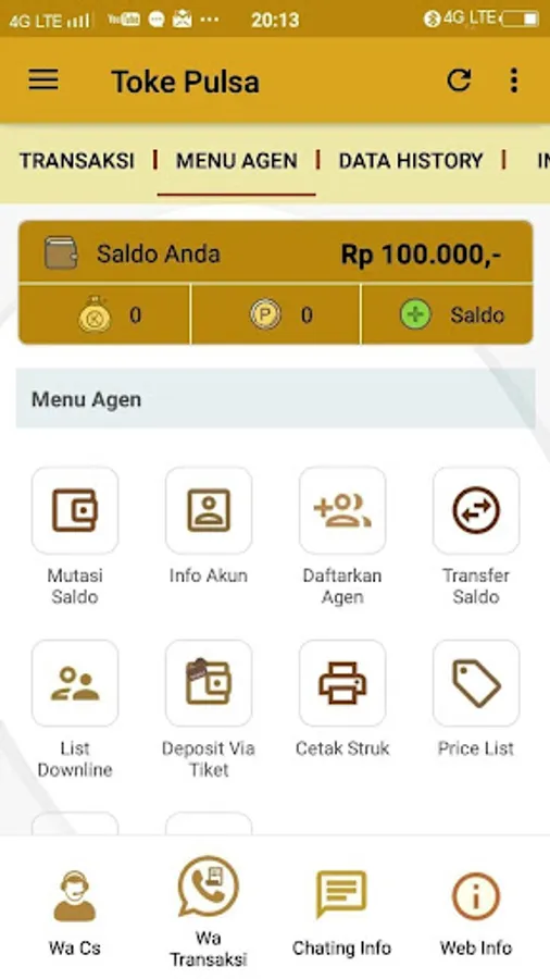 With this application, you can easily check the latest pulse prices, view a recap of transaction history, change your balance history, downline activities, chat with customer service, and so on.