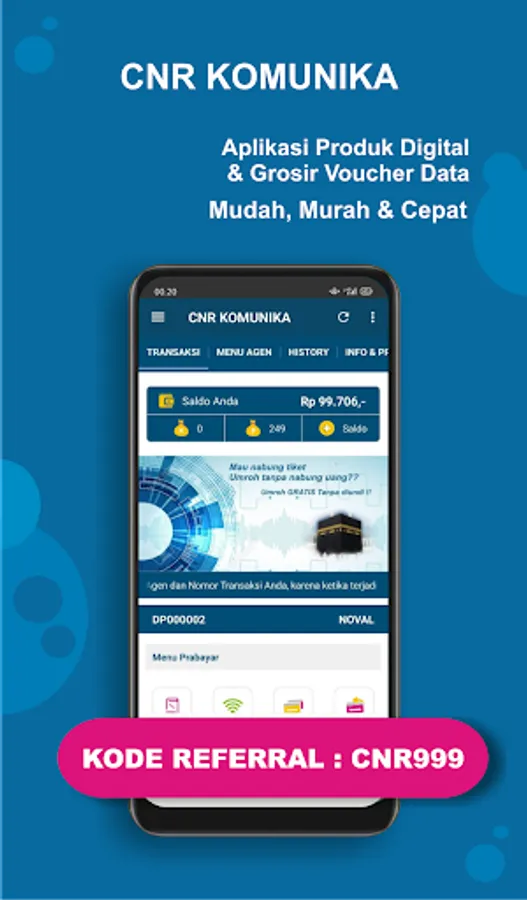For those of you who have a shop or counter, increase your income by becoming a CNR KOMUNIKA Agent. Get big profits of up to millions of rupiah and get Umrah tickets without being drawn.
