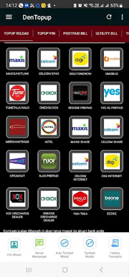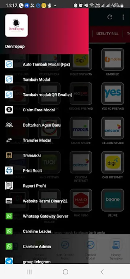 Top up your Celcom, Maxis, Tune Talk, RedOne Prepaid, Altel, Digi, One XOX lines easily from your e-Wallet