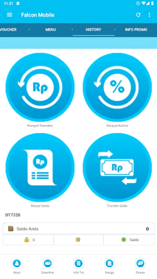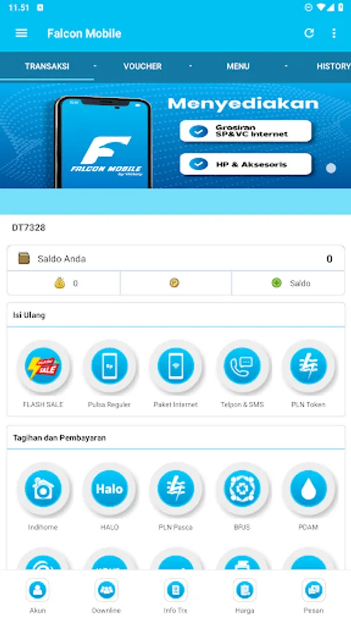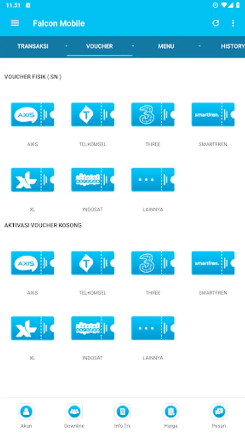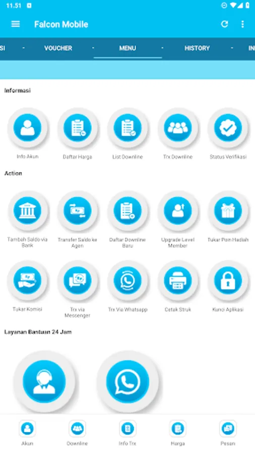 With this application, you can easily check the latest credit prices, see a recap of transaction history, change your balance history, downline activities, chat with customer service, and so on.
