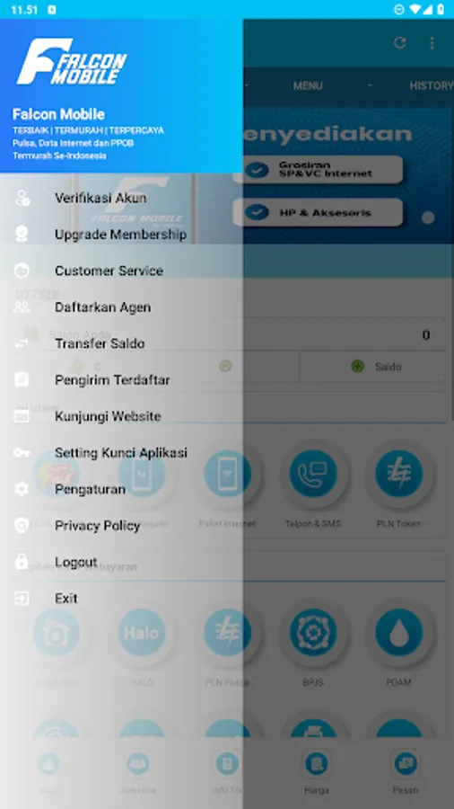Falcon Mobile android application is a free mobile application for loyal members of Falcon Mobile wherever they are. This application makes it easy for you to carry out various transactions such as topping up pulses, buying electricity tokens, PPOB, etc.
