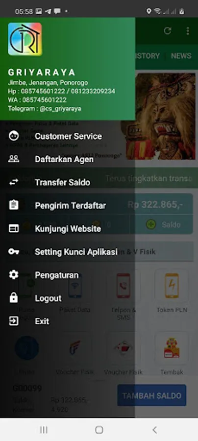 TOLL HIGHWAY GRIYA android app is a free mobile application for the members loyal GRIYA HIGHWAY TOLL wherever they may be. This application allows you to perform a variety of transactions such as recharging, purchase electricity tokens, postpaid bill payments, purchase vouchers games, etc.