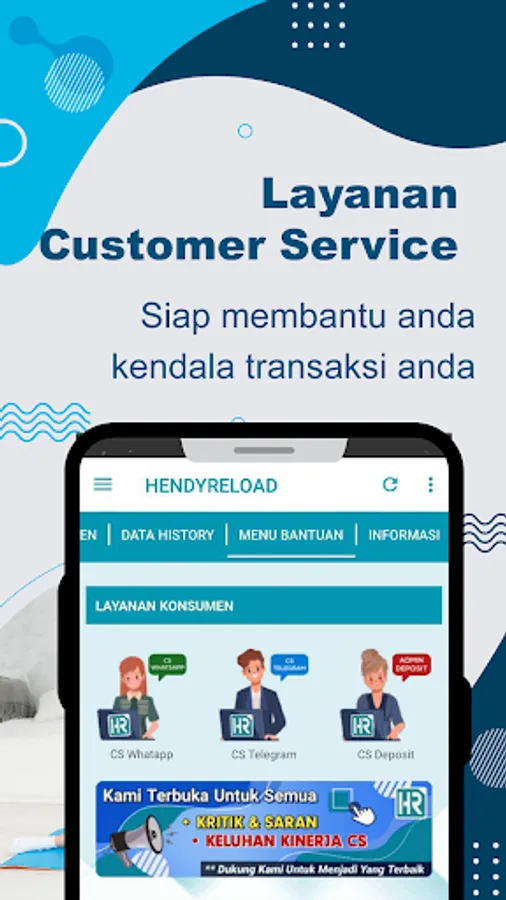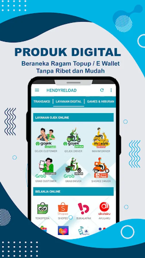 Hendy Reload android application is a free mobile application for loyal members Hendy Reload wherever located. This application makes it easy for you to perform various transactions such as topping up pulses, purchasing electricity tokens, paying postpaid bills, purchasing game vouchers, etc.