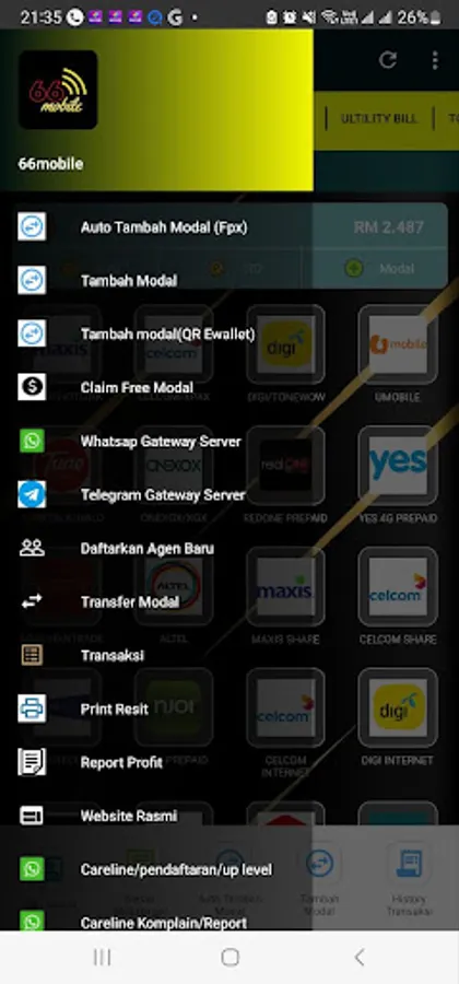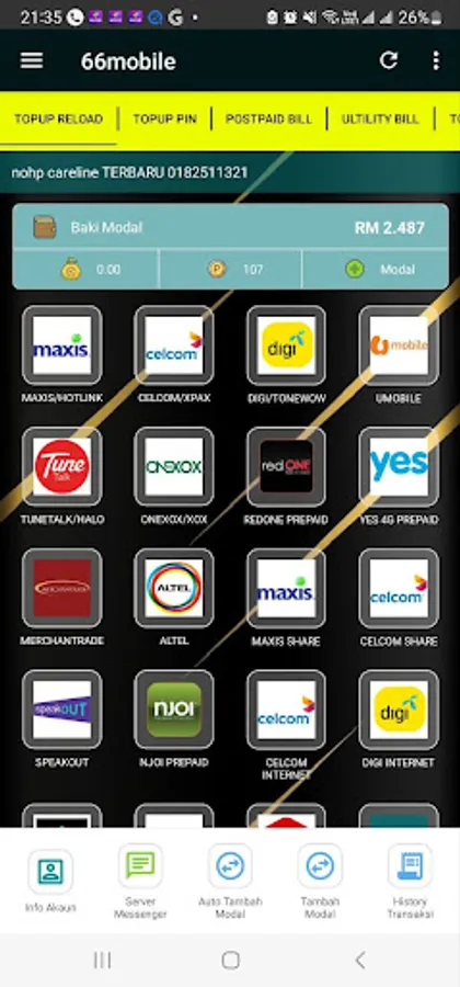 Top up your Celcom, Maxis, Tune Talk, RedOne Prepaid, Altel, Digi, One XOX lines easily from your e-Wallet