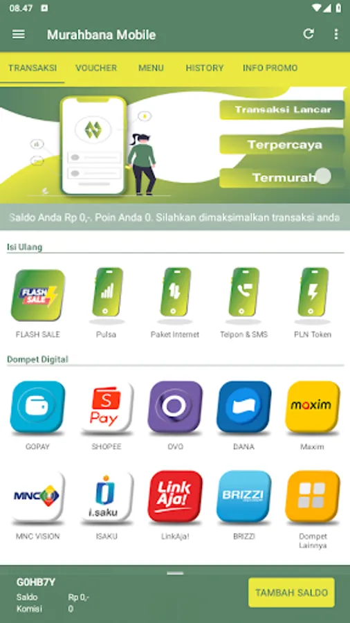 The Murahbana Mobile android application is a free mobile application for loyal members of Murahbana Mobile wherever they are. This application makes it easy for you to carry out various transactions such as topping up pulses, buying electricity tokens, PPOB, etc.