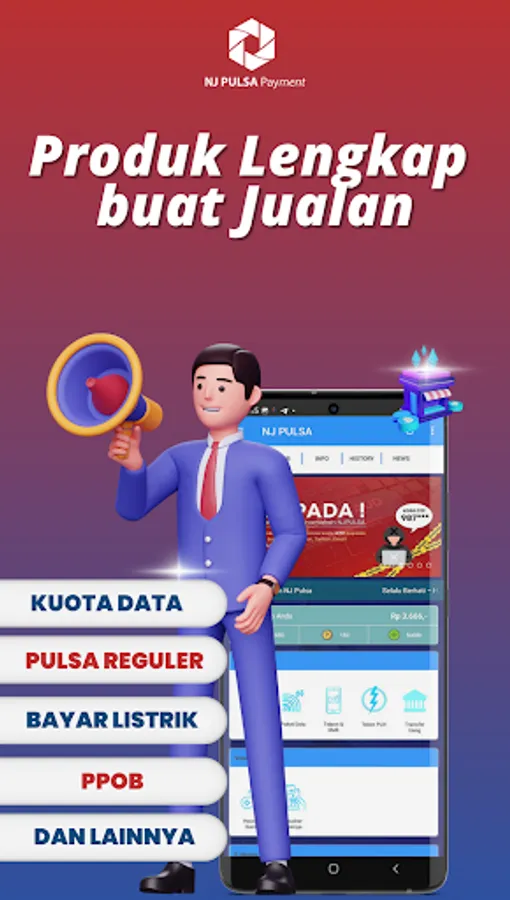 NJ PULSA is a solution for those of you who want to do business with Credit, Data Packages, PLN Tokens, Data Vouchers, Game Vouchers, and PPOB at competitive prices, can be resold or used yourself.