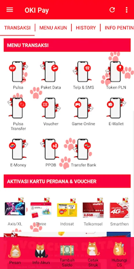 With OKI Pay you can easily check the best credit prices, view a recap of transaction history, history of balance changes, downline activities, chat with customer service, and so on.