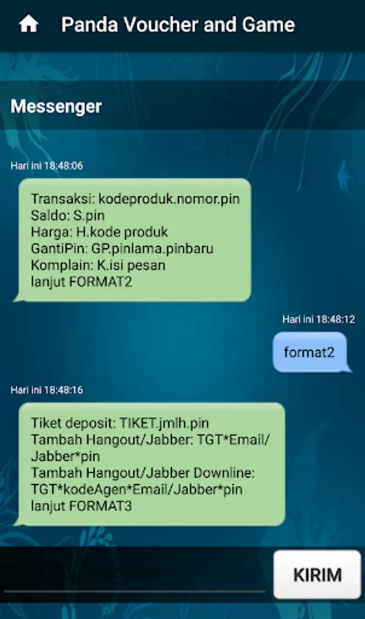 - Fitur chat messenger yang terhubung langsung dengan engine server pulsa kami