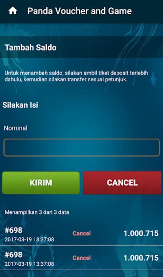 - Penambahan saldo dengan sistem tiket