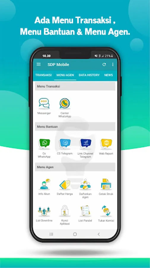 With this application, you can easily check the latest credit prices, view transaction history recaps, change your balance history, downline activities, chat with customer service, and so on.