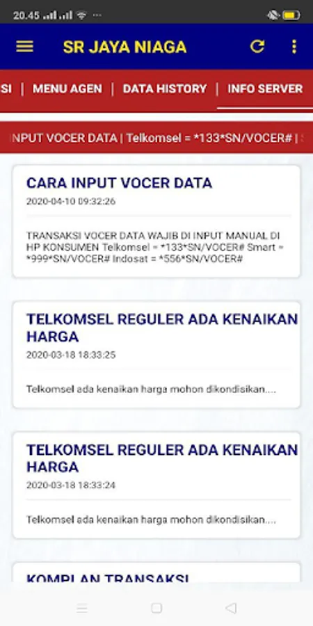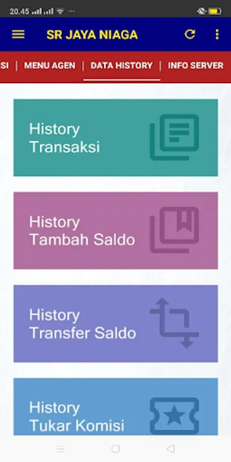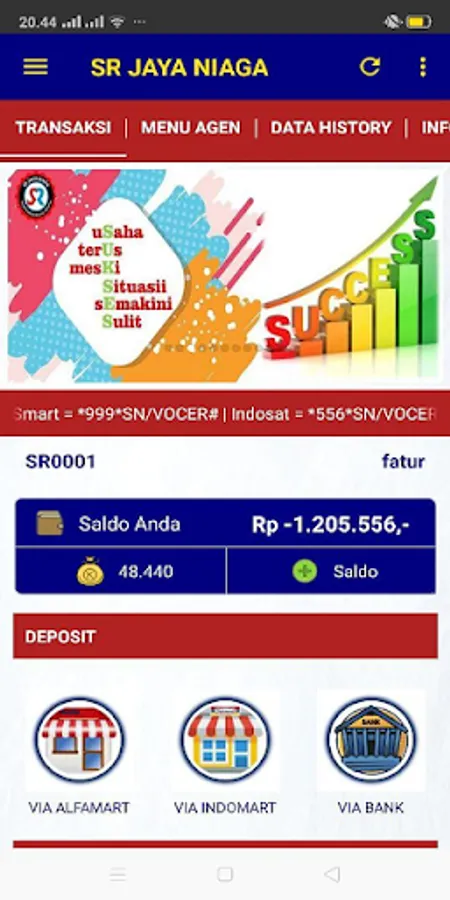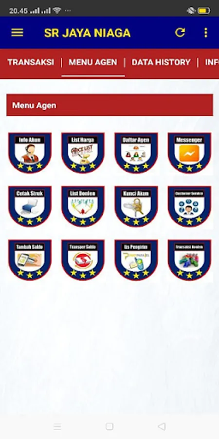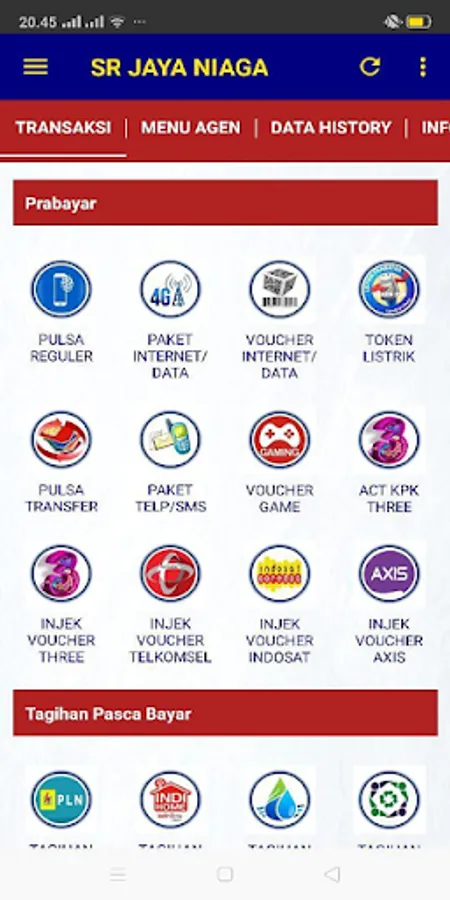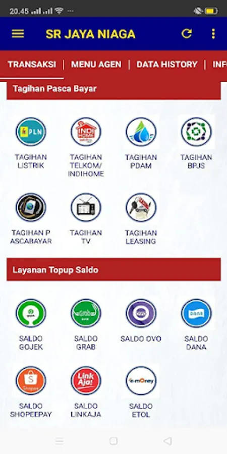 The SR JAYA NIAGA android application is a free mobile application for loyal members of SR JAYA NIAGA wherever they are. This application makes it easy for you to perform various transactions such as topping up pulses, purchasing electricity tokens, paying postpaid bills, purchasing game vouchers, etc.