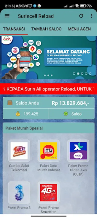 Surin cell reload is one of the supporting applications for counter business or personal use. We provide several features to support your transaction, including: