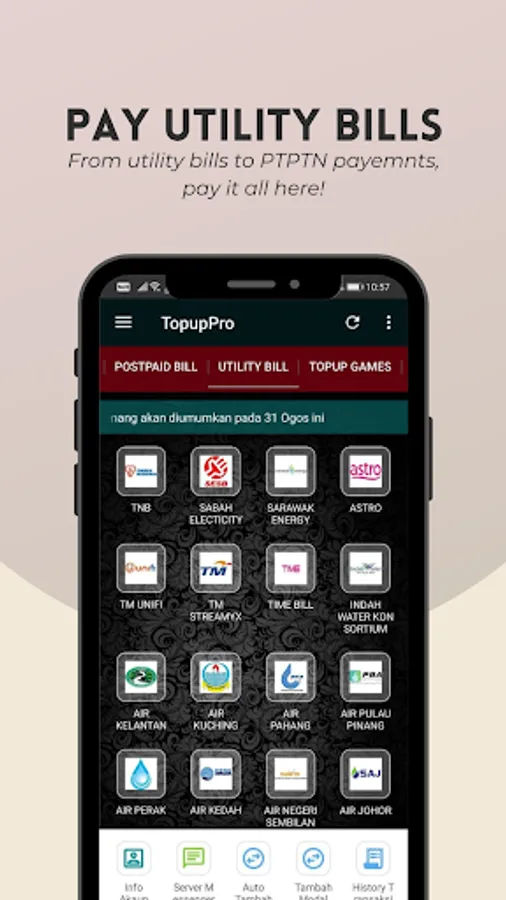 Pay your utility bills such as electricity, water, Astro, PTPTN, AEON Credit even can be used to pay your tax and others related payment with local councils at Majlis Bandaraya/Perbandaran