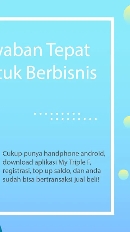 1. Top up Data Packages / Credit / Go-Pay Top Up / PLN Tokens & Pay PLN / BPJS / PDAM / Postpaid / TELKOM / TV / Multifinance / E-Money with guaranteed cheap and complete prices for My Triple F Agents.
