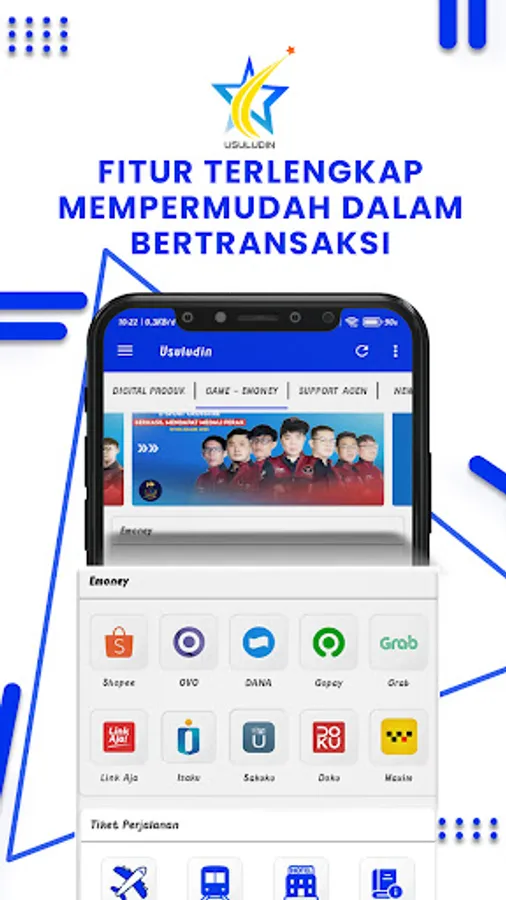 USULUDIN merupakan aplikasi digital payment yang menyediakan produk pulsa,pembelian kuota, pembelian token pln, pembayaran multi tagihan, hingga pemesanan tiket pesawat, tiket kereta api dan booking hotel di seluruh wilayah Indonesia
