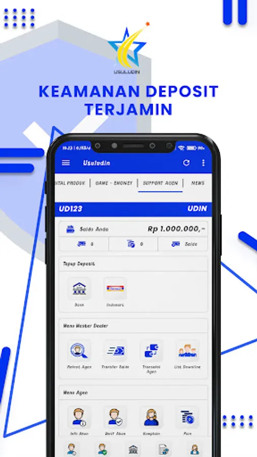 Aplikasi USULUDIN Agen menyediakan metode pengisian ulang deposit untuk kemudahan dan kenyamanan para Agen USULUDIN saat bertransaksi. Saat ini USULUDIN Agen menyediakan pilihan metode isi ulang deposit melalui Bank Transfer (ke BNI, BRI, BCA, Mandiri), Gerai Retail (Alfamart, Indomart) dan E-Money