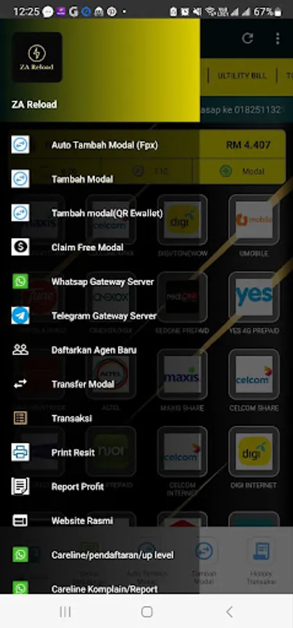 Top up your Celcom, Maxis, Tune Talk, RedOne Prepaid, Altel, Digi, One XOX lines easily from your e-Wallet