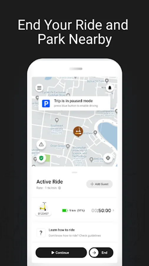 * End your ride and go