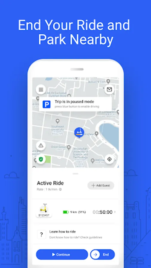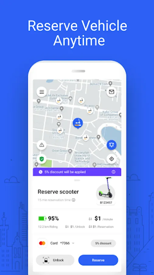 Mit den TAM-Scootern, kannst du unsere Stadt erkunden und auf intelligente, sichere und nachhaltige Weise überall hingelangen. Öffne einfach die App und miete dir ein Fahrzeug in nur wenigen Schritten.
