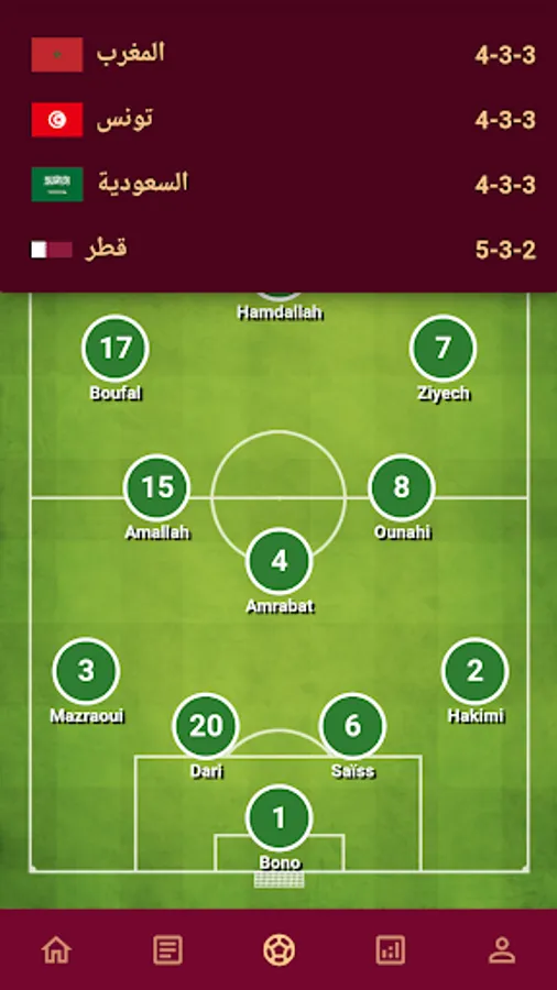 The National Team application gives you exclusive coverage of the Arab teams, Morocco, Algeria, Tunisia, Libya, Mauritania, Tunisia, Saudi Arabia