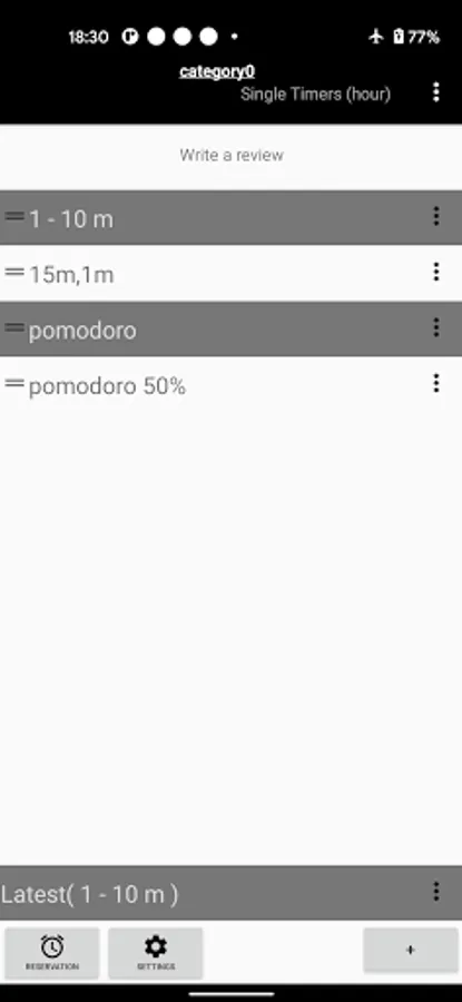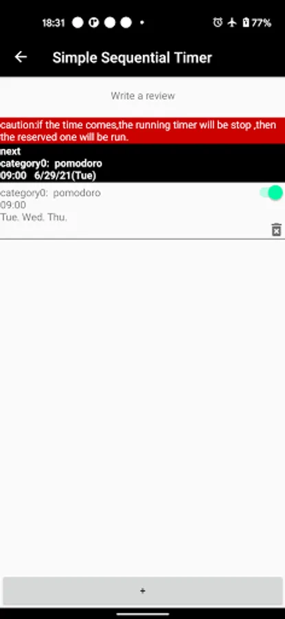 ・Start of each timer can be notified by sound, vibrate (pattern can be created) and TTS.