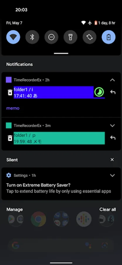 ・Create buttons to record actions with just one tap, and categorize them in folders.