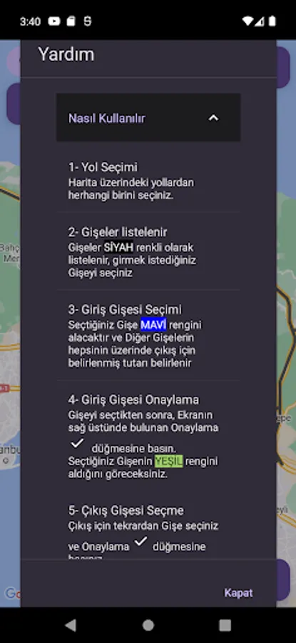 After choosing a road on the map, you will see its tolls on the map. We want you to choose the entrance box at first. After selecting the entrance booth, prices will appear above the other toll booths. After confirming the Box Office you have chosen, you need to select and confirm the Exit Box. In the list below, the roads you choose will be listed with their toll booths and prices.