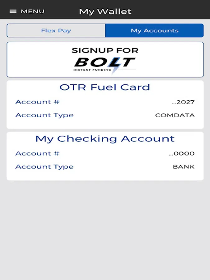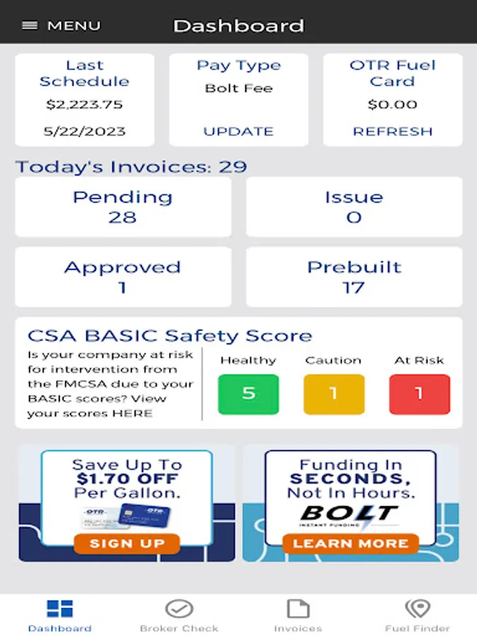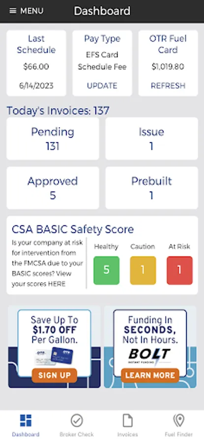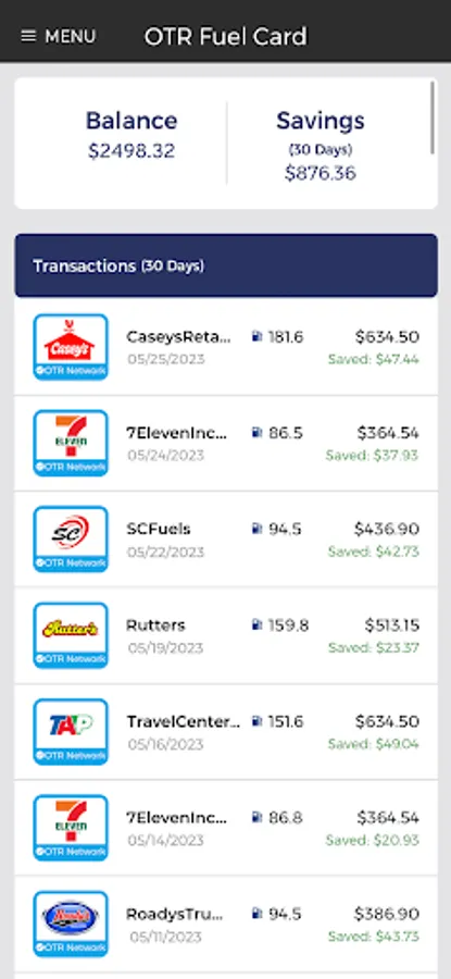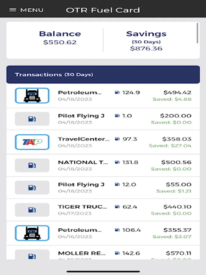 • Fuel Up and Save: Fund your OTR Fuel Card right from the mobile app. Stay on top of in-network fuel locations on your route using Fuel Finder for ultimate savings.