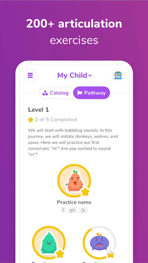 - Each speech exercise also has 200+ stickers to be collected, encouraging the individual to be more engaged with the speech therapy.