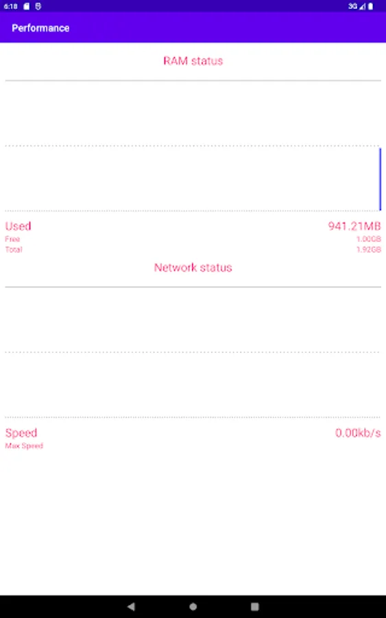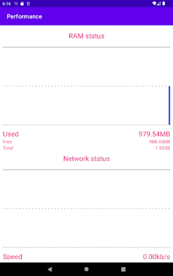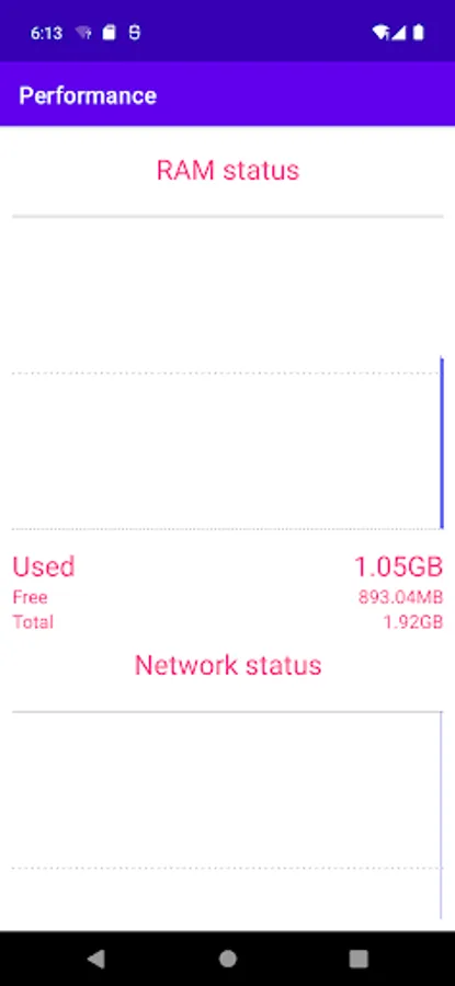 Performance: show Ram and network status.