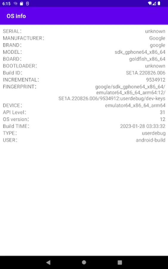 Os Info: Android system info;