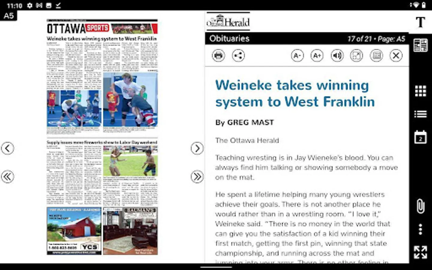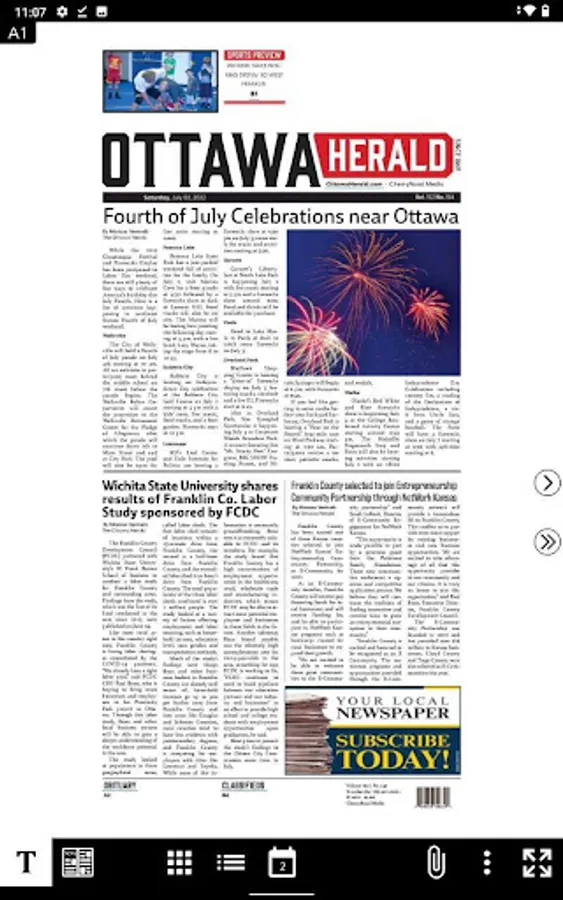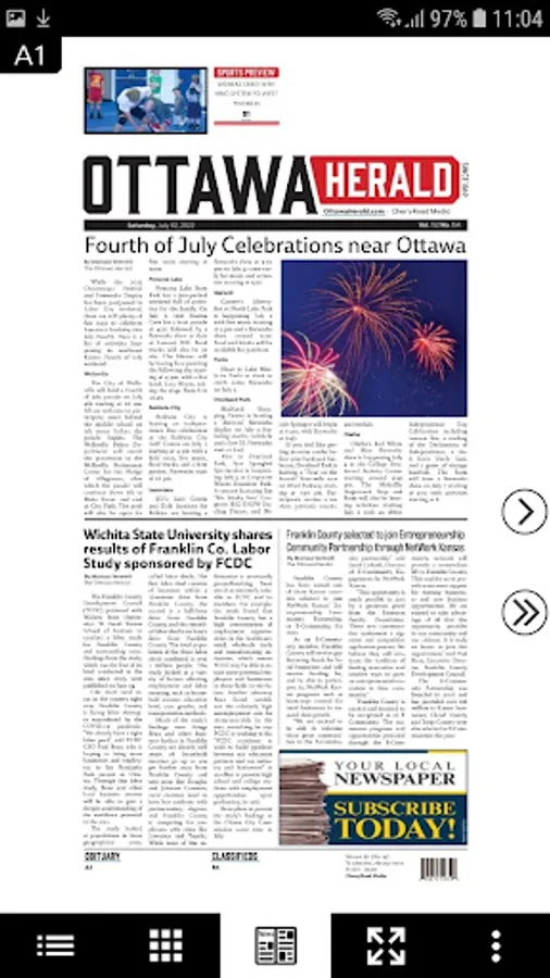 The Ottawa Herald eEdition is an exact digital replica of the printed newspaper. Readers of the paper can flip through the pages, read stories, photos, and view ads just they appeared in print.