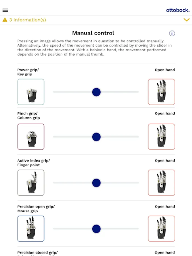 You can use the Myo Plus app from Ottobock to configure the Myo Plus prosthesis control and adapt it to changing requirements at any time. For this purpose, the Myo Plus app connects to the Myo Plus TR installed in the prosthesis or to the Myo cuff.