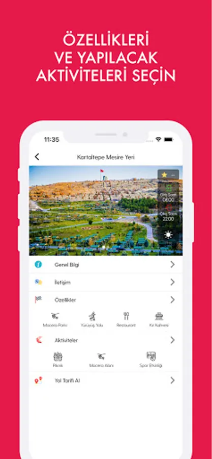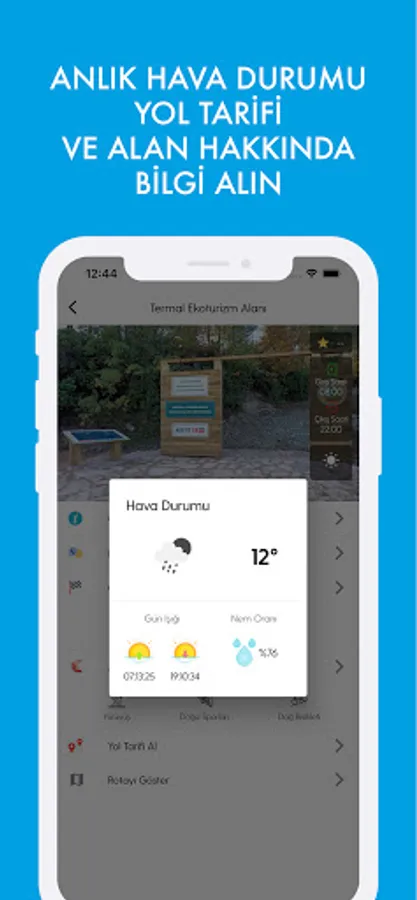 You will be able to see the route and route directions of the promenade and ecotourism routes, instant weather conditions and get information about the activities you can do.
