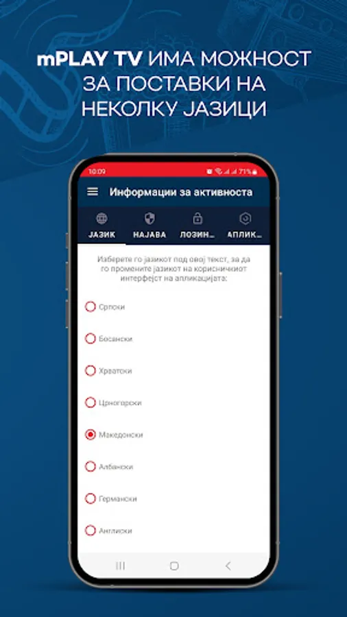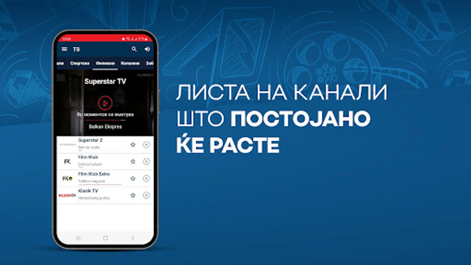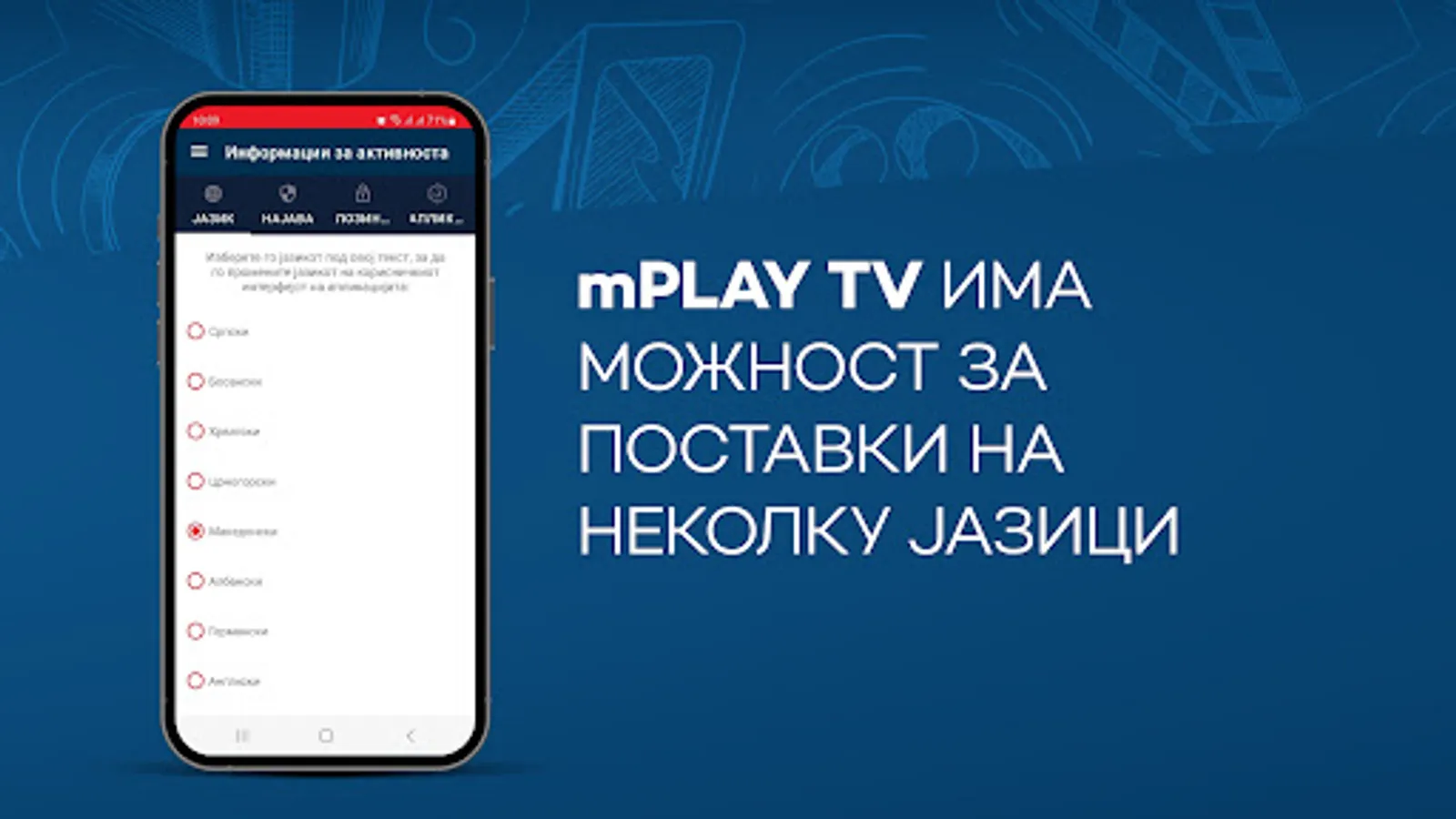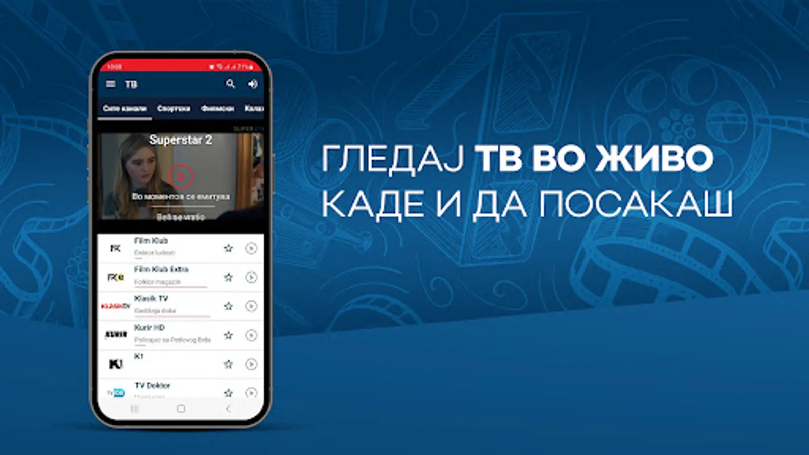 So mPLAY TV uzivajte vo videoteka so najdobrite regionalni serii i filmovi, kako i live TV prenos od najinteresnite kabelski kanali od Balkanot na edno mesto. Superstar, Toxic TV, Agro TV, K1, Balkan Trip, Euronews Serbia, Arena eSport se samo del od kanalite kade mozete da gi gledate najnovite filmski serii od produkcijata na Telekom Srbija, aktuelni muzichki izdanija, programi so vozbudlivi reportazhi od Balkanot, vesti od zemjodelstvoto i informativni nastani od poleto na kulturata i svetot.
