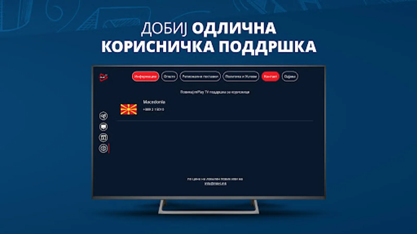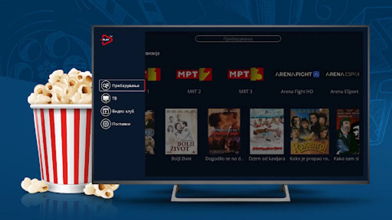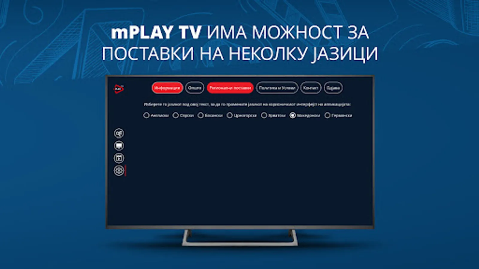 So mPLAY TV uzivajte vo videoteka so najdobrite regionalni serii i filmovi, kako i live TV prenos od najinteresnite kabelski kanali od Balkanot na edno mesto. Superstar, Toxic TV, Agro TV, K1, Balkan Trip, Euronews Serbia, Arena eSport se samo del od kanalite kade mozete da gi gledate najnovite filmski serii od produkcijata na Telekom Srbija, aktuelni muzichki izdanija, programi so vozbudlivi reportazhi od Balkanot, vesti od zemjodelstvoto i informativni nastani od poleto na kulturata i svetot.