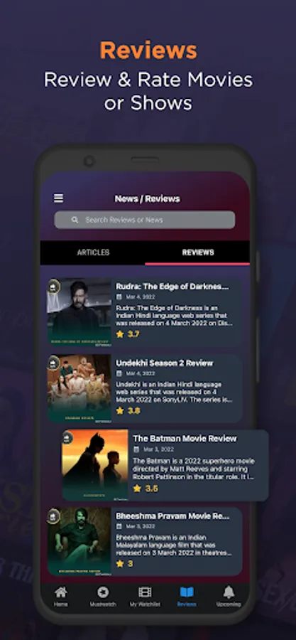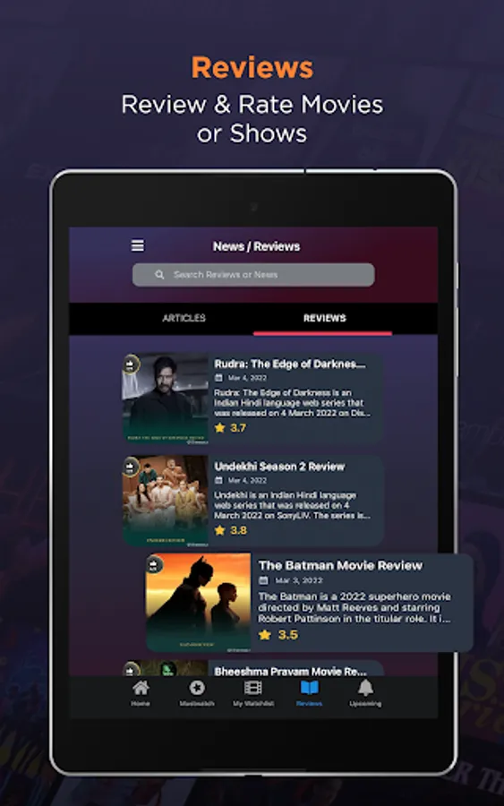 • Rate or Review a movie, TV Shows or Web Series