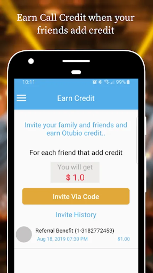 Another great feature of Otubio is the ability to share or transfer credit. If you have friends or family that want to use Otubio to make cheap calls but do not have a means to add credit to their account, you can transfer credit from your account directly to theirs. In addition, their is a referral feature that also enables users to get free credit when they refer friends.