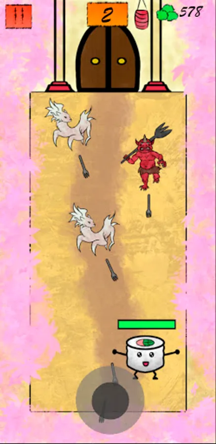 Our sushi roll will attack with chopsticks, while enemies will throw forks like projectiles because we all know that eating sushi with a fork can't be right.