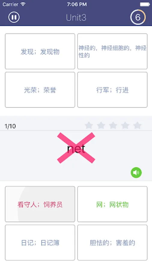 After you finish each lesson, you can test your learning achievements through tests, and you can learn the difficult words repeatedly.