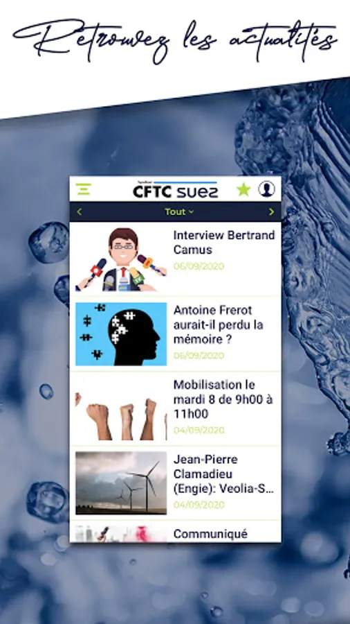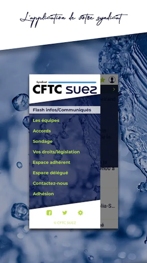 CFTC SUEZ is modernizing and acquiring an application that is ergonomic, design and easy to use, in order to allow everyone to be able to access in real time important information, news from SUEZ and the union, and positions held by our trade union organization.