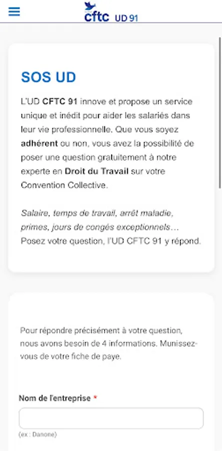 The CFTC UD 91 app is the essential tool for all members and supporters of the Essonne CFTC Departmental Union. It brings together in one place all the information, services, and tools you need to support you in your daily professional life.