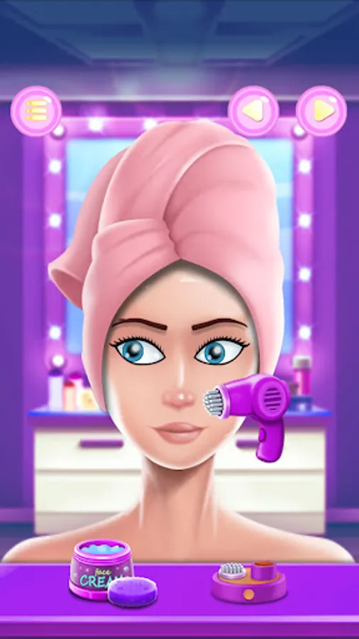 💋 In this beauty salon, you can experience the real makeup process. Tons of tools for you to discover, use facial cleanser to do a skin massage before makeup, choose different cosmetics to create fashion makeups, Style your costomers with clothing, hairstyles and accessories to match her look!