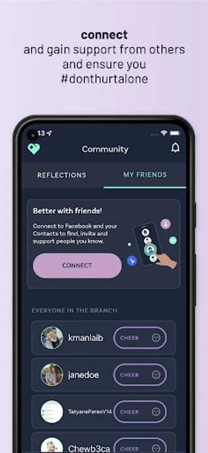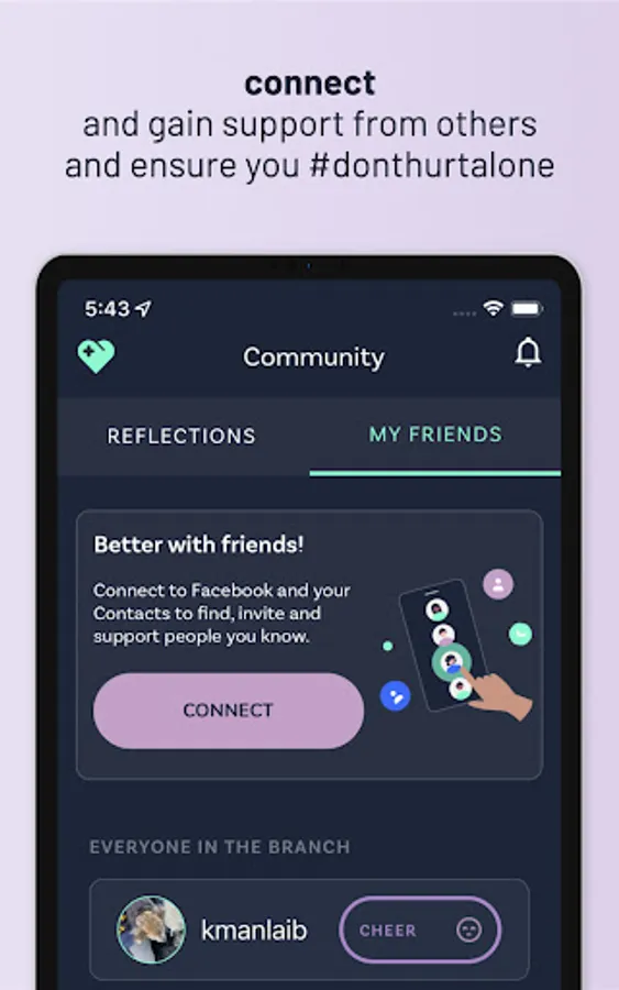 We offer the ability to connect to your Contact List so you can invite friends through text or email to join and support you on your journey.